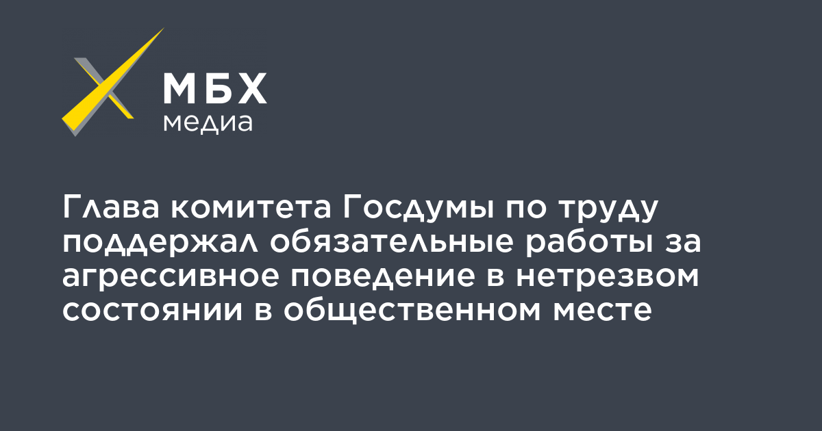 Глава комитета Госдумы по труду и социальной политике Ярослав Нилов поддержал инициативу о введение обязательных работ за агрессивное поведение в нетрезвом состоянии в общественном месте. Об этом он рассказал «МБХ медиа». Ранее с таким предложением выступили депутаты Самарской губернской думы. Однако они предложили более широко применять эту практику: ко всем нетрезвым людям в общественных местах, вне зависимости от их поведения.