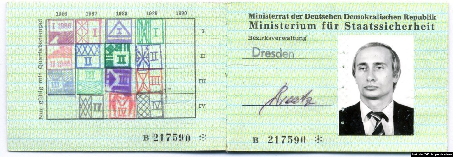 33-летний выпускник института КГБ СССР Владимир Путин приехал в ГДР по распределению в 1985 году и покинул ее в 1990-м – уже после падения Берлинской стены. Немецкой пятилетки своей биографии российский президент не скрывает, но на уходящей неделе стал известен факт, о котором он никогда публично не говорил: у Путина было удостоверение сотрудника Штази, Министерства госбезопасности Восточной Германии и на тот момент одной из самых зловещих спецслужб в мире.