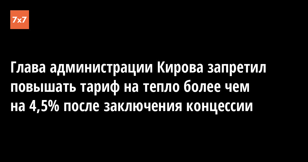Глава администрации Кирова запретил повышать тариф на тепло более чем на 4,5% после заключения концессии