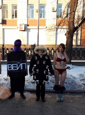Организаторы мероприятия провели пикет против абсурдных запретов, в котором, по их оценкам, приняли участие более 250 человек. Центром акции стали человек-вейп, человек-колбаса, человек-кофе, человек-огурец и девушка в кружевном белье. У остальных участников мероприятия рты были заклеены черным скотчем.