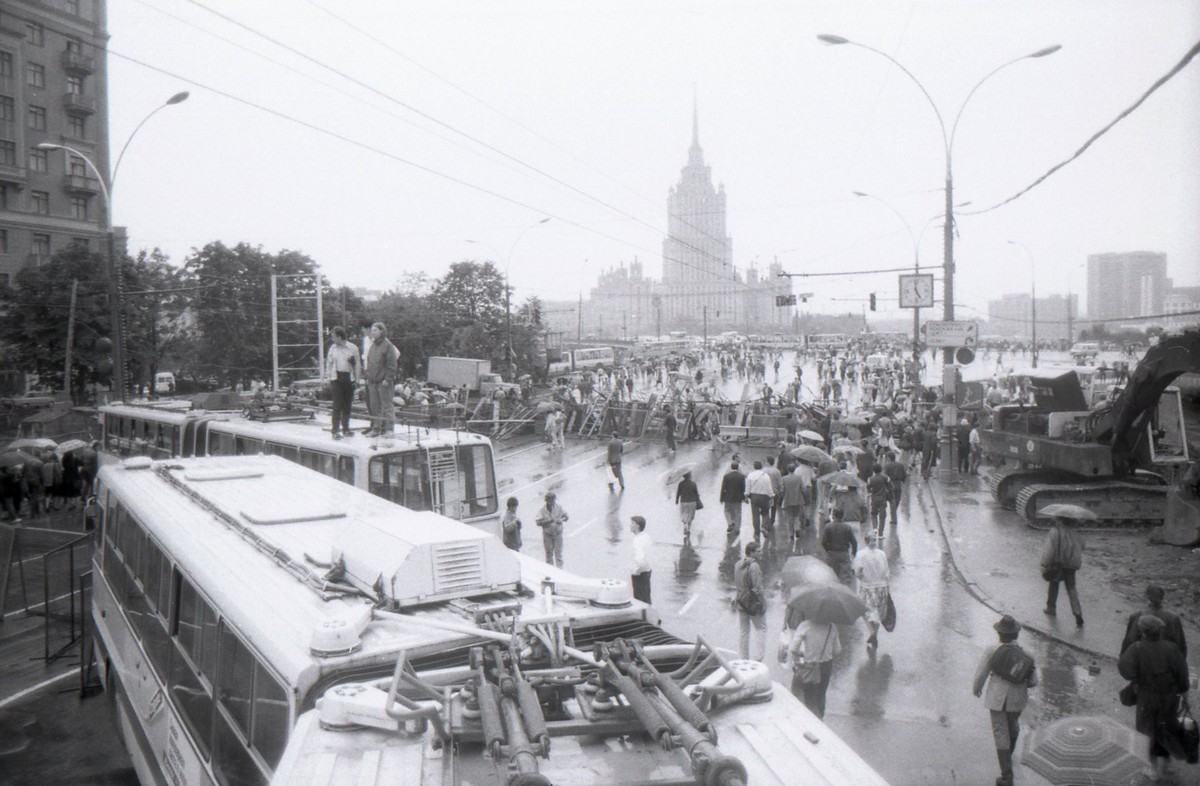 Начало строительства баррикад и блокирования проезда к Дому правительства, 19 августа 1991 года