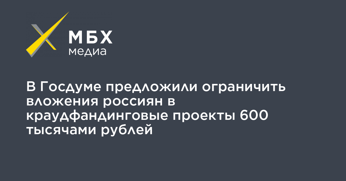 В Госдуме предложили ограничить вложения россиян в краудфандинговые проекты 600 тысячами рублей