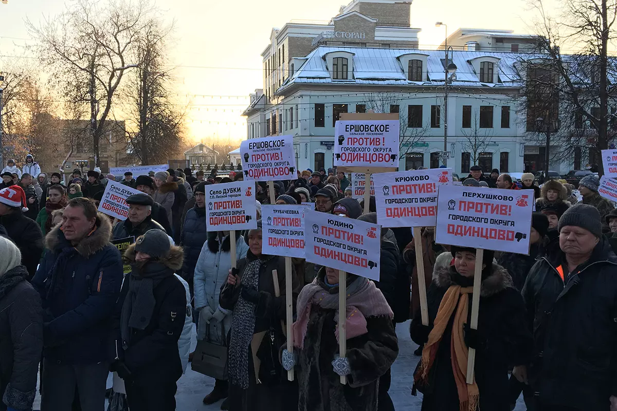 В этом году самые массовые митинги в Подмосковье были посвящены проблемам экологии, и как правило активисты требовали отставки губернатора области Андрея Воробьева. 16 декабря жители Звенигорода вышли с тем же требованием, но по другому поводу — людей на улицы вывела административная реформа.