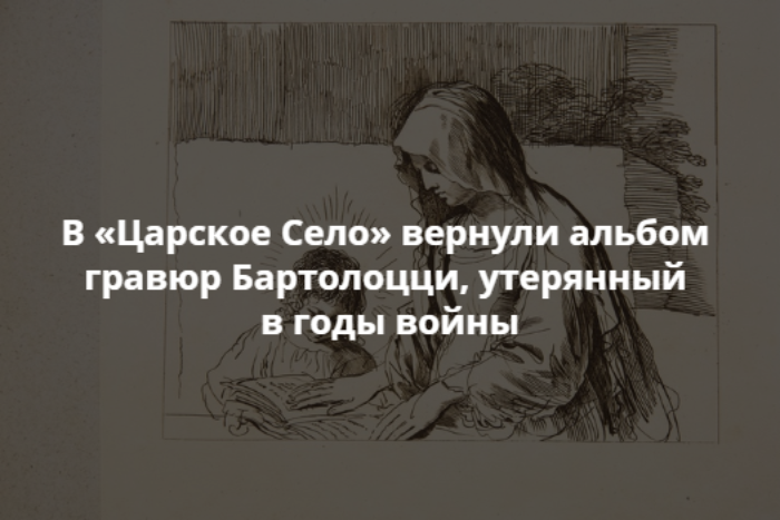 В коллекцию государственного музея-заповедника «Царское Село» вернули альбом гравюр итальянского художника Франческо Бартолоцци, который был утрачен в годы Великой Отечественной войны. Об этом сообщили в музее.