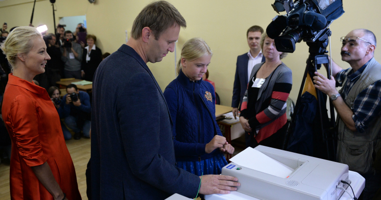 Алексей Навальный на избирательном участке во время выборов мэра Москвы. Фото: Максим Блинов / РИА Новости