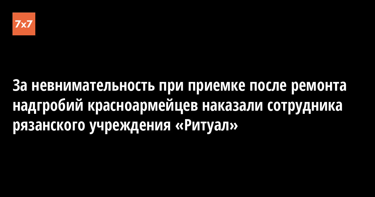 За невнимательность при приемке после ремонта надгробий участников Великой Отечественной войны на Рязанском мемориале наказали сотрудника муниципального учреждения «Ритуал». Об этом 18 декабря в ответе на запрос интернет-журнала «7x7» сообщила начальник отдела по связям со СМИ Рязанской администрации Ирина Щербакова.