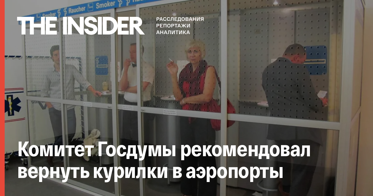 Комитет Госдумы по охране здоровья рекомендовал принять законопроект, предлагающий вернуть курилки в аэропортах в зонах для зарегистрированных пассажиров, а также для работников аэропорта и авиакомпаний, сообщает «Интерфакс». Соответствующий законопроект внес в в ноябре 2017 года депутат от «Единой России» Сергей Боярский.