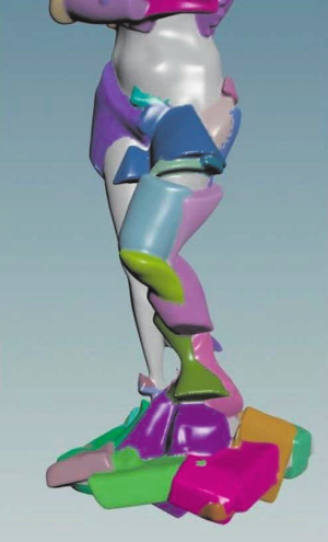 Тут надо сказать, что мы с моим многолетним другом и коллегой Александром Пасько (который с недавних пор является и профессором Сколтеха) издавна интересуемся «компьютерным искусством» вообще и «цифровой скульптурой» в частности. Для нас это отличный полигон для тестирования новых методов моделирования геометрических форм на основе так называемого функционального представления — когда объект любой сложности описывается одной точной непрерывной математической функцией весьма нетривиального вида. При этом в дополнение к геометрии с каждой точкой пространства ассоциированы и функции, описывающие разные физические атрибуты (цвет, материал и т. д.). Вот кубистическая компьютерная скульптура очень нам в качестве такого полигона подходила: она характеризуется наличием очень характерных и в то же время тонких художественных особенностей и к тому же имеет естественный потенциал для анимации с ее «оживлением» — и последующей фабрикацией с использованием 3D-принтинга.