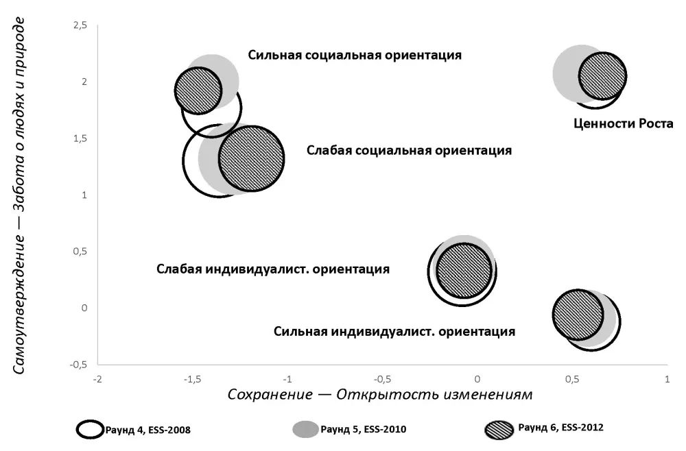 — Да, мы наблюдаем изменения в ценностях людей. Притом что россияне действительно остаются близки к консервативному полюсу, мы тем не менее видим движение в сторону открытости изменениям.