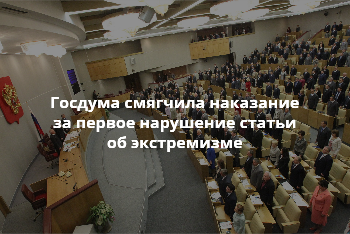 Поправки смягчают наказание при первом обвинении в экстремизме в интернете и СМИ. Теперь за первое подобное нарушение граждан будут привлекать к административной ответственности, а при повторном, совершенном в течение года, — к уголовной.