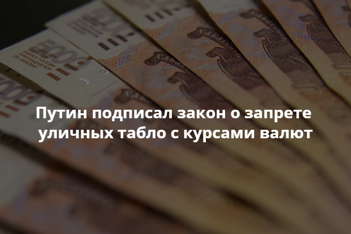 Президент России Владимир Путин подписал указ, который запрещает банкам выставлять информацию о текущем курсе валюты на электронных уличных табло. Соответствующий документ опубликован на официальном портале правовой информации.