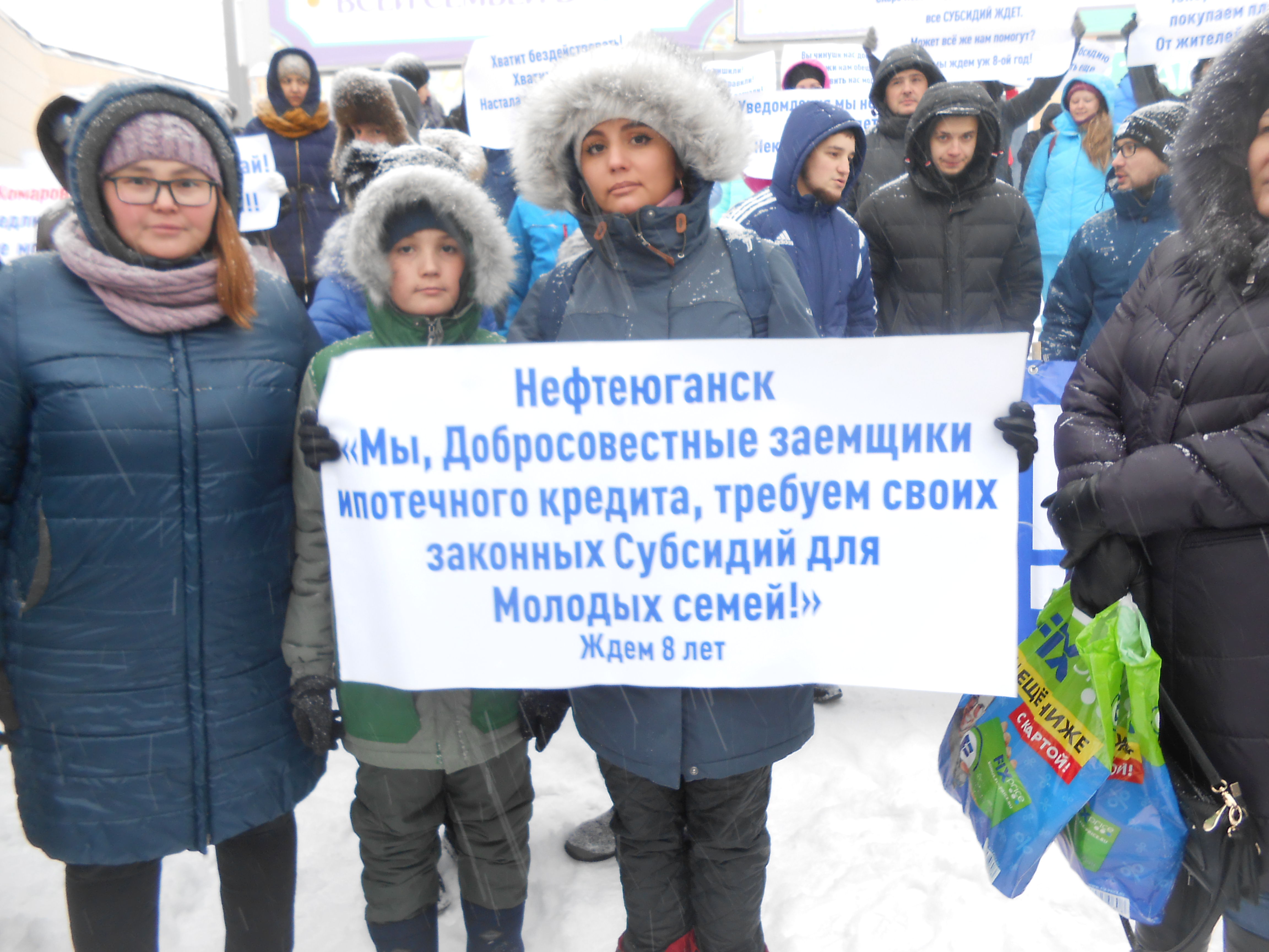 В начале декабря в центре Сургута, несмотря на мороз, десятки семей вместе с детьми устроили протестную акцию и записали видеообращение к Владимиру Путину. Люди требуют вернуть их в льготную жилищную программу и выплатить обещанные субсидии. Окружная программа по улучшению жилищных условий населения подразумевает, что после покупки квартиры в кредит у банков-партнеров ее участникам вернут часть суммы. Но многие ждут денег еще с 2010 года. А кого-то вообще выбросили из программы.