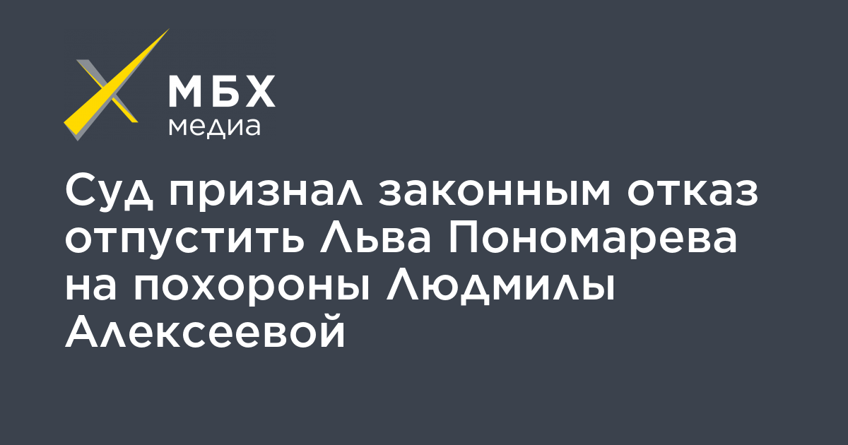 Мосгорсуд признал законным отказ удовлетворить заявление главы движения «За права человека» Льва Пономарева о прекращении или приостановлении административного ареста для посещения похорон правозащитницы Людмилы Алексеевой. Об этом сообщает корреспондент «МБХ медиа».