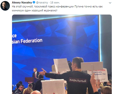 11:30 «Окончательно сказали, что на прессуху не допустят (зачем тогда аккредитовали - неясно). Что ж,быть единственным журналистом, которому не позволено приходить на пресс-конференцию Путина — это почетно, я считаю. (Кстати, сегодня поздравим Путина с днем чекиста новым расследованием)», — сообщил Доброхотов.