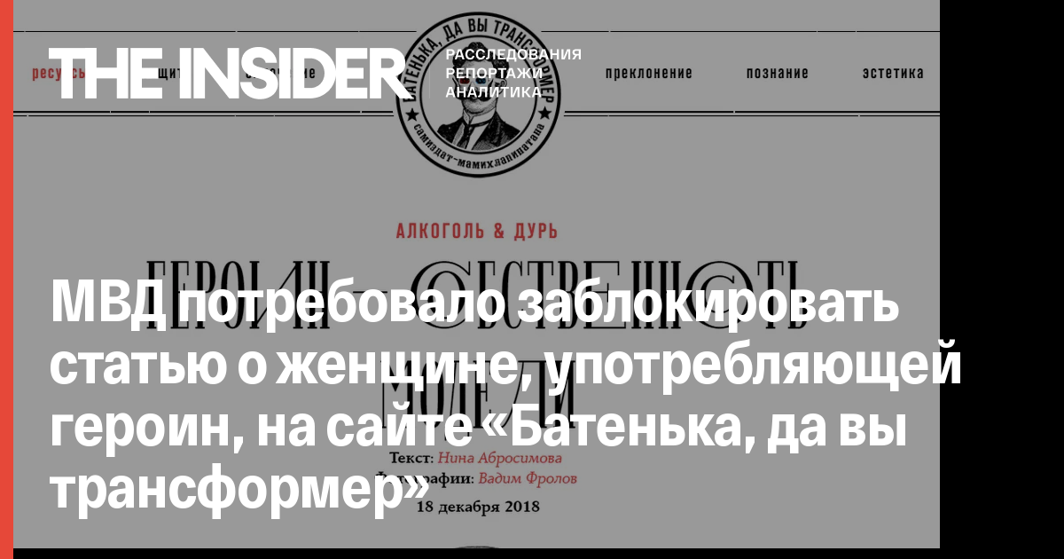 МВД потребовало заблокировать статью о женщине, употребляющей героин, на сайте «Батенька, да вы трансформер»