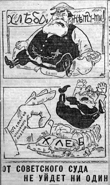 Уголовная статья, направленная против спекулянтов и перекупщиков, была применена к простым производителям, собственникам хлеба, как к "нарушителям революционной законности". Что Сталин охотно поддержал, лишь переведя проведение репрессивных мер с ОГПУ на народные суды и прокуратуру, что должно было в глазах крестьянства придавать им необходимый антураж законности.