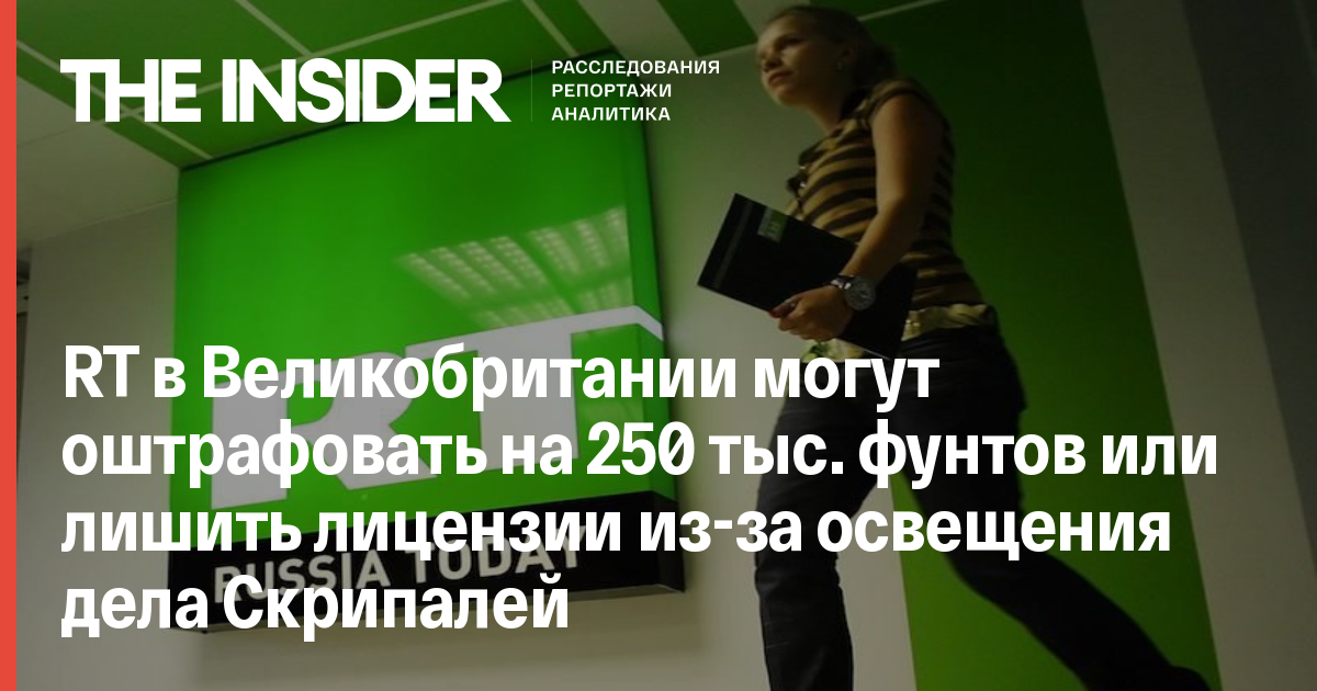 RT в Великобритании могут оштрафовать на 250 тыс. фунтов или лишить лицензии из-за освещения дела Скрипалей