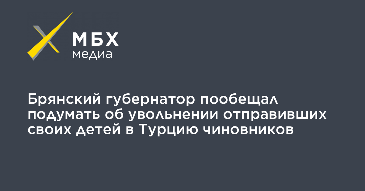 Брянский губернатор пообещал подумать об увольнении отправивших своих детей в Турцию чиновников