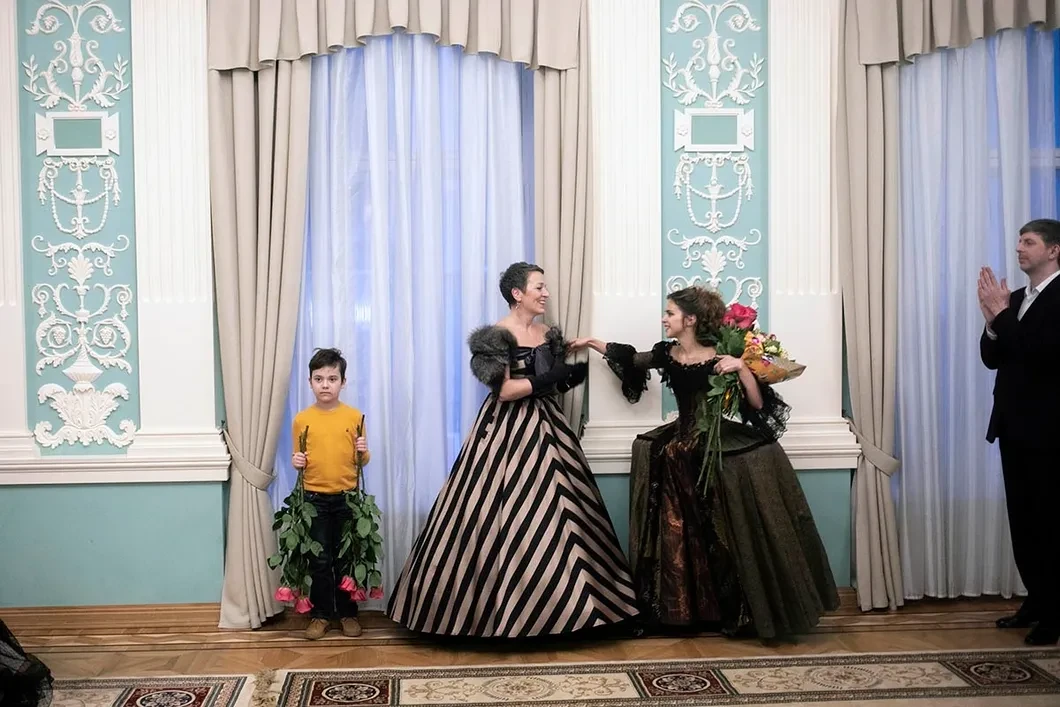 Но вижу Никиту, который открывает полонез, потом вальсирует с красивой блондинкой, потом талантливо разыгрывает с Анной сценку из дворянской жизни в соседнем Покровском зале — том самом, где когда-то родилась «Геликон-опера». После бала здесь — камерный концерт солистов оперы, пациентов и воспитателей центра. И одна на всех бабушка снова снимает из третьего ряда, и, кажется, что это действительно один коллектив, а может, и семья. По крайней мере, так кажется со стороны. А потом всех приглашают спуститься в буфет, где будут домашние пирожки и тортик со свечкой — чтобы задуть всем вместе, начать традицию. У всех ли были такие свечки к 18-ти?