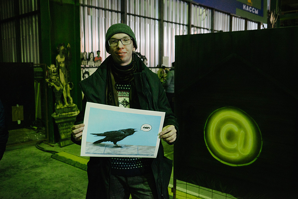 — Я пришел сюда, потому что тут выставляются мои друзья и я слежу за тенденциями в современном искусстве. Купил фотографию работы, оригинал которой нарисован на стене. Тут ворона и значок машины — car. Мне кажется, ворона немножко возмущена, слишком много «кар» (машин — прим. «Бумаги») в городах, большая загазованность.