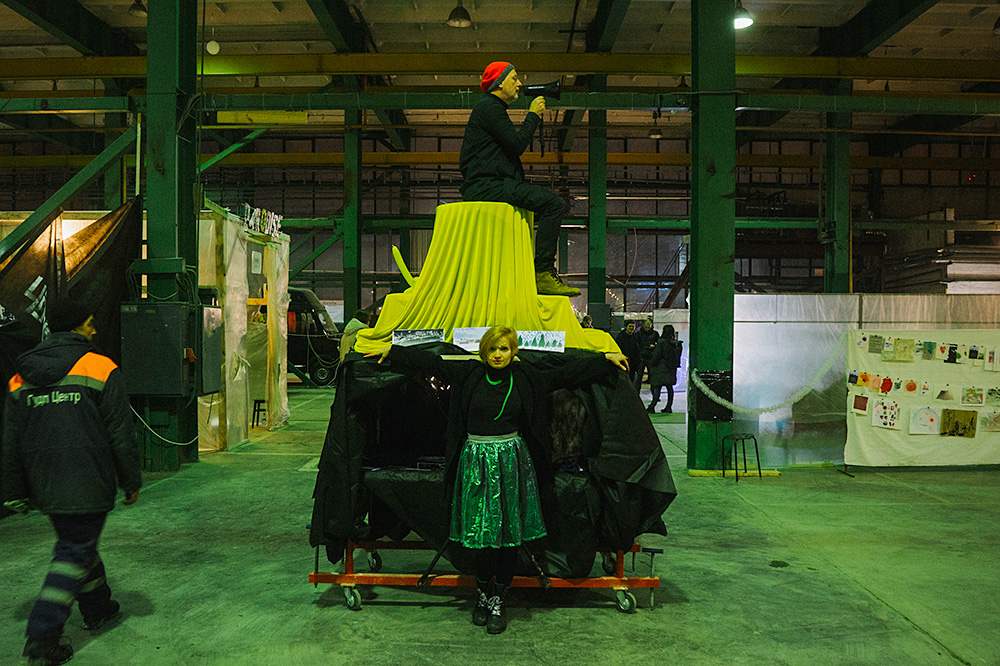 — У нас единственная номадическая конструкция на ярмарке — то есть она может путешествовать по пространству. Можно устраивать перформанс «Куратор напрокат» — Глеб Ершов садится наверх, и его можно катать по залу за 50 рублей в минуту.
