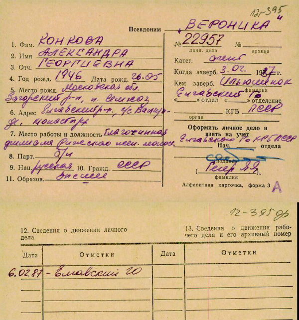 Наконец, данные еще одного рассекреченного латвийскими архивистами агента полностью совпадают с данными действующей игумении Серафимо-Дивеевского монастыря Нижегородской епархии РПЦ МП Сергии (в миру - Конкова Александра Георгиевна). Согласно учетной карточке агента ее завербовали в феврале 1987 года под псевдонимом "Вероника". В графе "Место работы и должность" на момент вербовки указано: "благочинная филиала Рижского женского монастыря". Под "филиалом" подразумевается популярная в советские времена (когда действующих монастырей в РПЦ МП было всего 18) Преображенская пустынь в Елгаве.