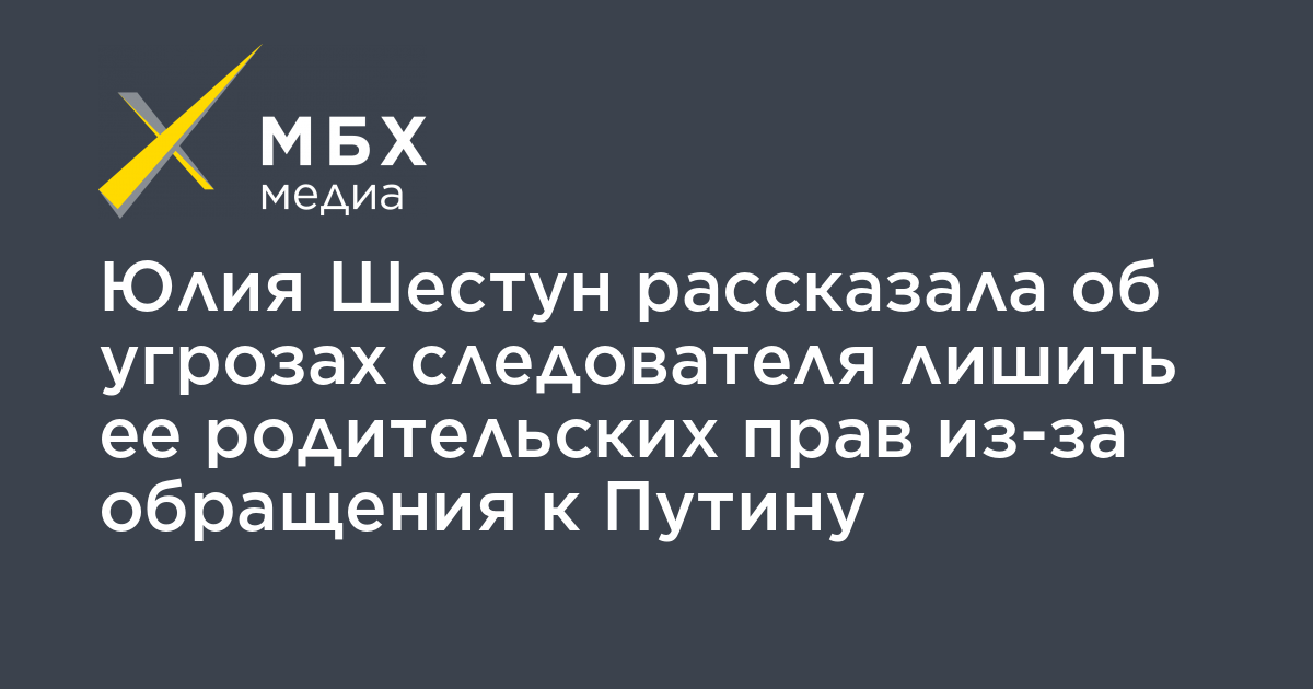 Юлия Шестун рассказала об угрозах следователя лишить ее родительских прав из-за обращения к Путину