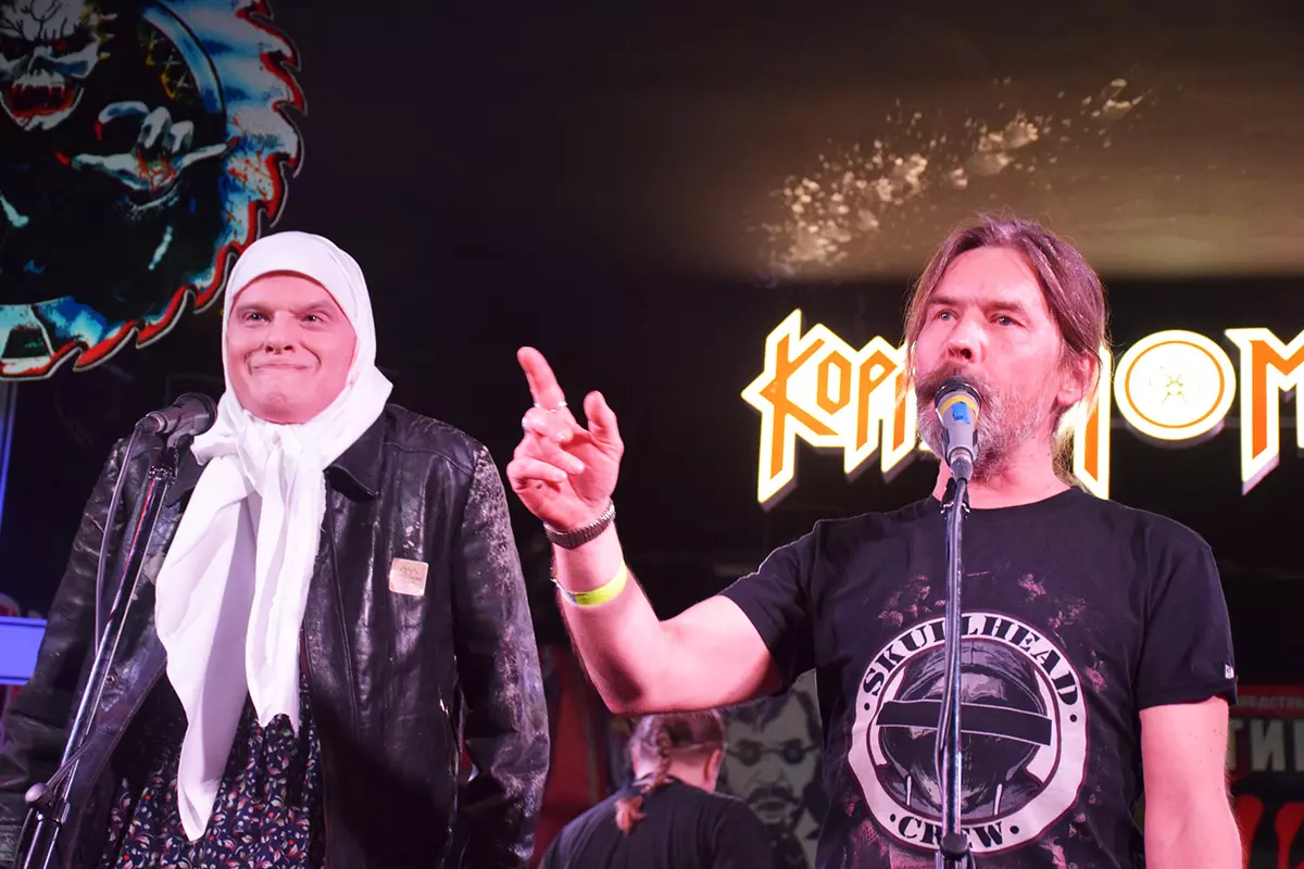 — Да. Вообще сейчас же все подряд запрещают, не только музыку на самом деле. У чиновников, и у силовиков — у них сегодня мода запрещать. Когда мы с «Коррозией металла» выступали, я писал список от АХСиМСЗ, что мы поем, Паук писал песни от «Коррозии», что они поют. Потом это отдавалось эфэсбешнику, который следил, чтобы эти песни пелись, а не другие. Теперь же просто «на всякий случай» запрещают.