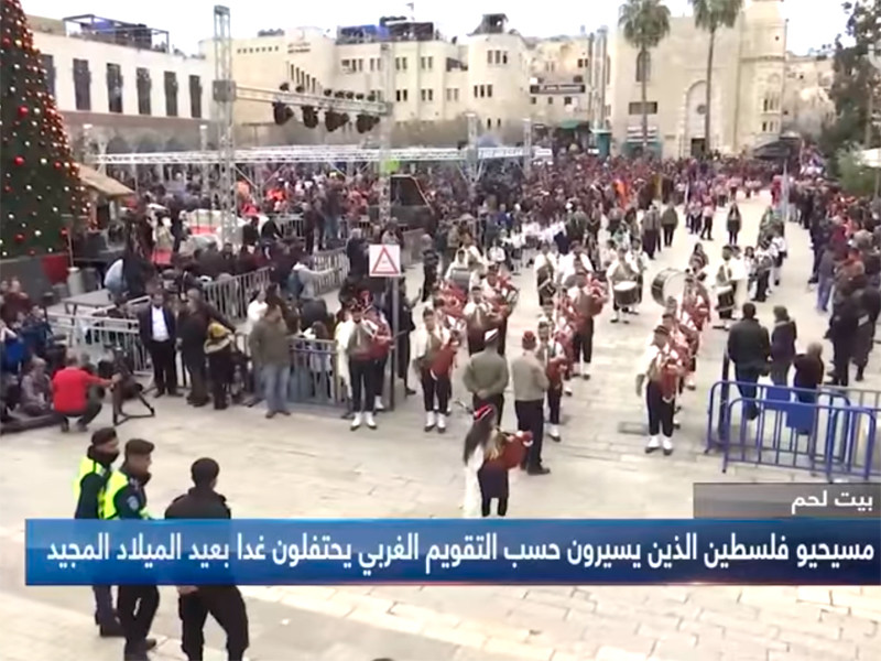 Тысячи христианских паломников из разных уголков мира собрались в рождественский сочельник в городе Вифлеем на Западном берегу реки Иордан, где, согласно преданию, родился Иисус Христос. Под гром барабанов и пение волынок по ведущей к Ясельной площади улице Звезды традиционным Рождественским парадом прошли оркестры и музыкальные ансамбли скаутов и учеников двух десятков христианских палестинских школ, передает ТАСС.