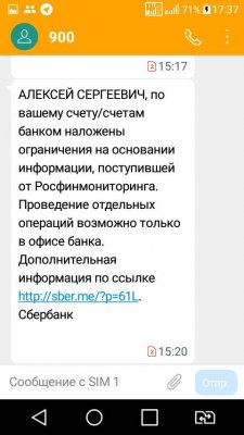 Как рассказал Чернов, смс-сообщение ему пришло после того, как он успешно оплатил отправку ФСИН-письма своему брату. К смс приложили ссылку с сайта «Сбербанка», где сказано, что ограничение введено в связи с поступившей информацией от Федеральной службы по финансовому мониторингу (Росфинмониторинг) о возможной причастности клиента к экстремистской деятельности или терроризму.