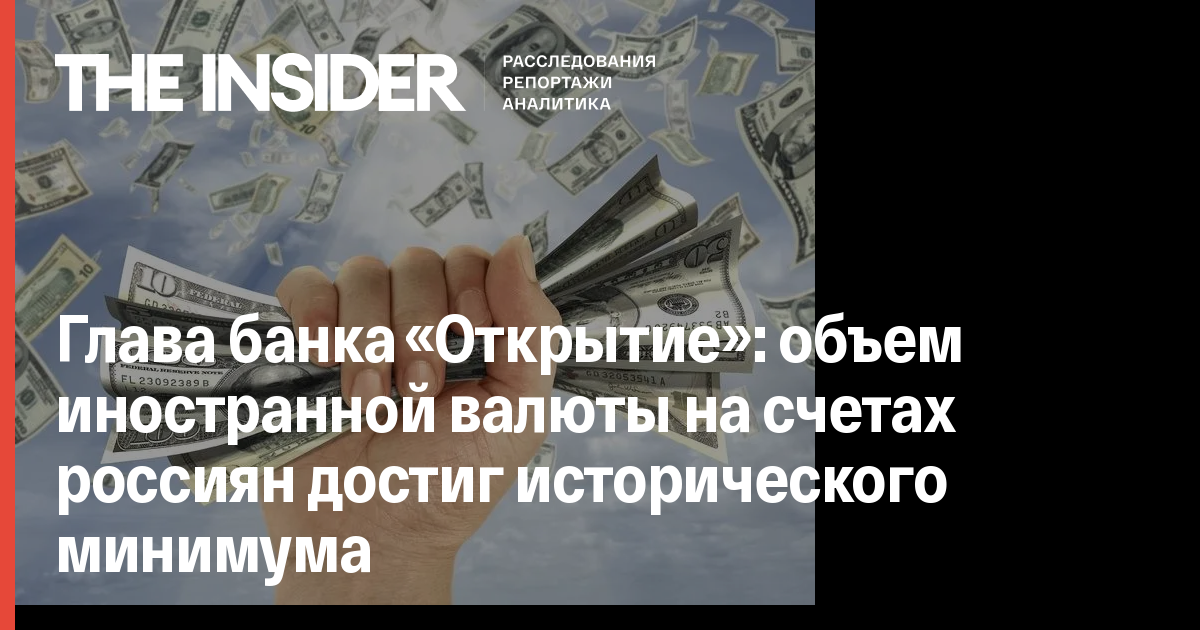 Глава банка «Открытие»: объем иностранной валюты на счетах россиян достиг исторического минимума