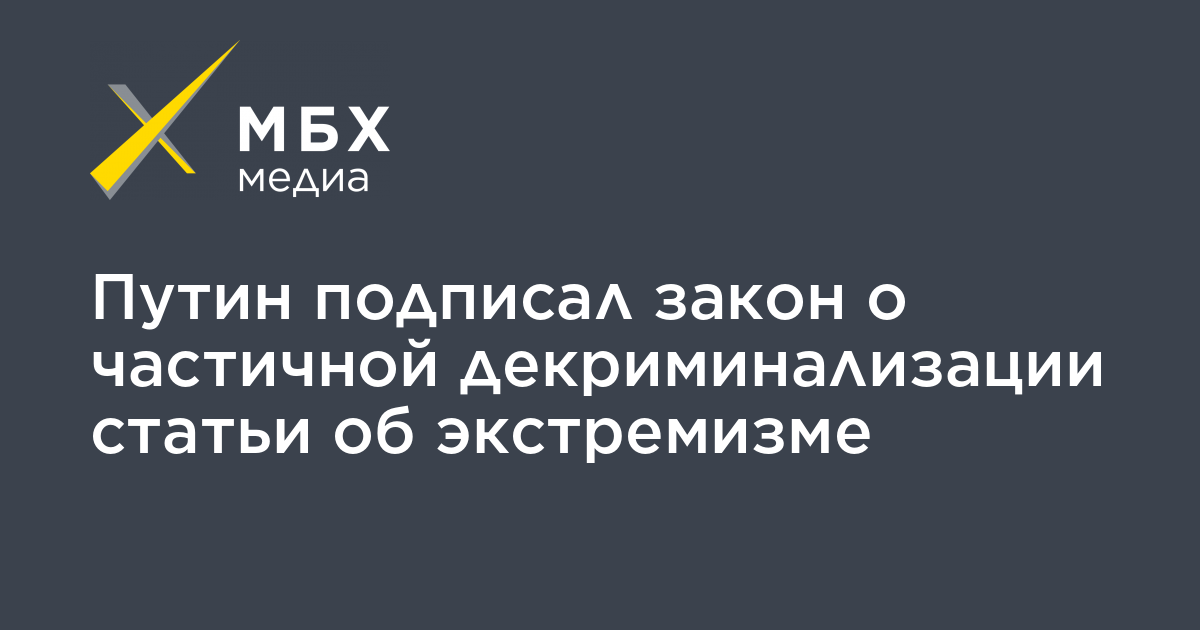 Путин подписал закон о частичной декриминализации статьи об экстремизме
