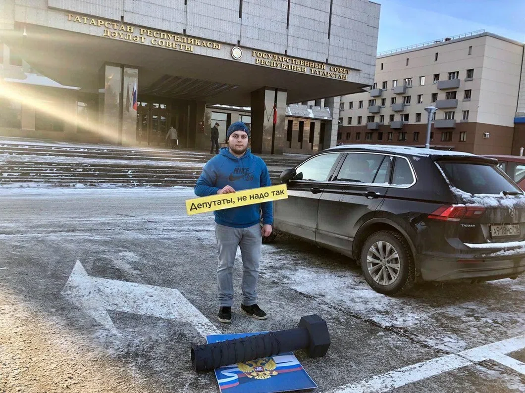 На него составили протокол за акцию «Хватит класть болт на нашу Конституцию», которую он и еще один активист Гульназ Равилов провели в день Конституции 12 декабря.