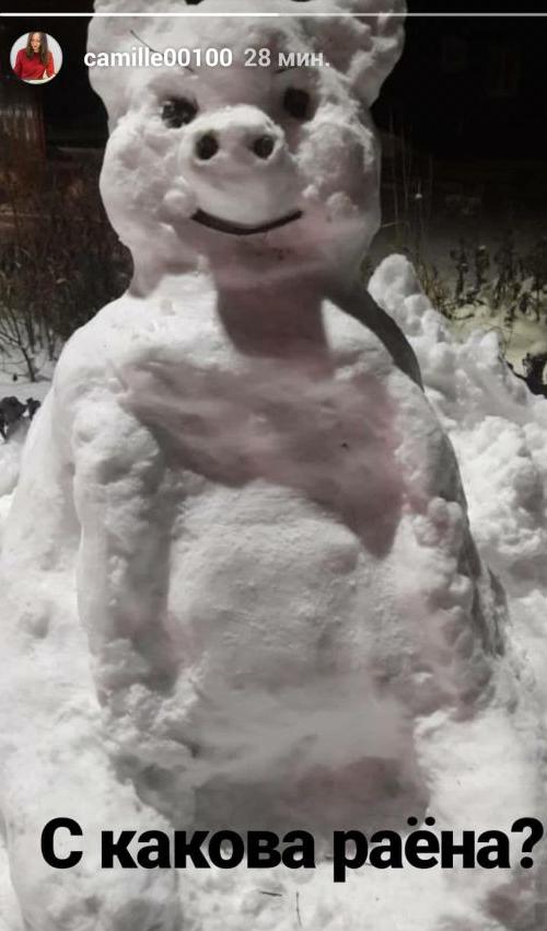 В городе также появились снеговики необычных форм. К примеру, медведь, заяц на дереве, свинья и снежный Лев Толстой с сигаретой во рту.