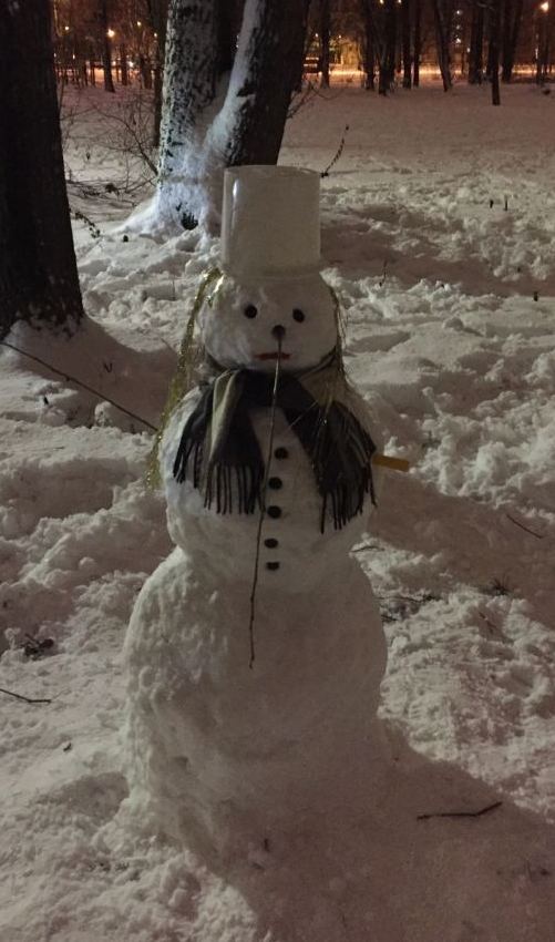 Снеговик без рук и лица, с ресницами из еловых веток и пуговицами вместо глаз — «Бумага» выбрала фотографии необычных и странных снеговиков из социальных сетей петербуржцев.