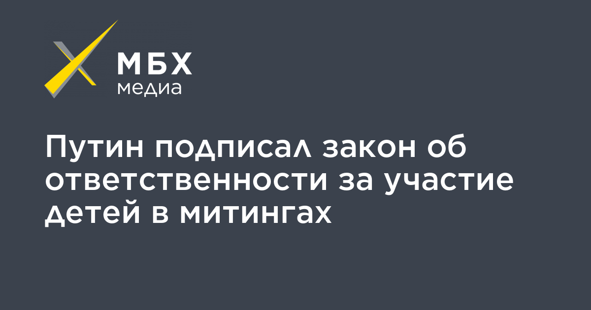 Президент Владимир Путин подписал закон о наказании за вовлечение несовершеннолетних в несанкционированные акции. Документ опубликован на официальном интернет-портале правовой информации.