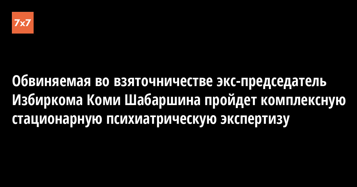 Сыктывкарский городской суд 28 декабря назначил экс-председателю Избирательной комиссии Коми Елене Шабаршиной, обвиняемой в получении взятки, стационарную комплексную психолого-психиатрическую экспертизу с привлечением невролога в республиканской больнице, сообщил корреспондент «7x7» из зала суда.