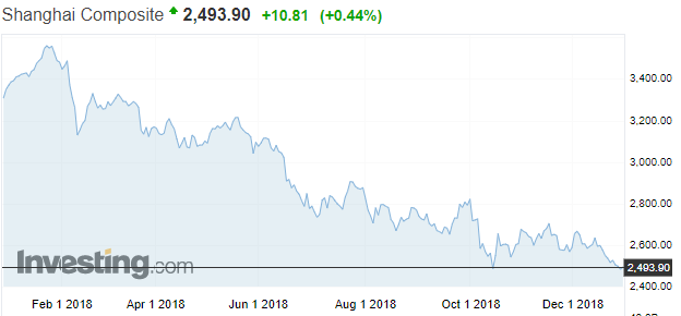 Худшим фондовым рынком в мире в 2018 году оказался китайский: главный местный индекс Shanghai Composite с начала года упал почти на четверть, продемонстрировав худший результат с 2002 года (то есть, скорее всего, за всю историю). Главная причина — торговая война с США, которая уже обошлась фондовому рынку Китая в $2,4 трлн.