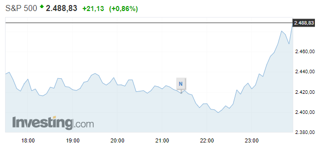 Что произошло? Индекс S&P продемонстрировал крупнейший разворот вверх с 2010 года, отыграв дневное падение в 2,9% и закончив день в плюсе на 0,9%. Аналогичная ситуация с Dow Jones — падение более чем на 2,7% в течение дня и +1,1% по итогам торговой сессии.