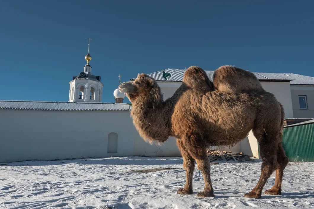 Нет — реально верблюд! Только один горб скособочило. Ходит желтый по белому снегу вразвалочку, раздувает ноздри. А над верблюдом высокое небо и устремленные в него маковки церквей.