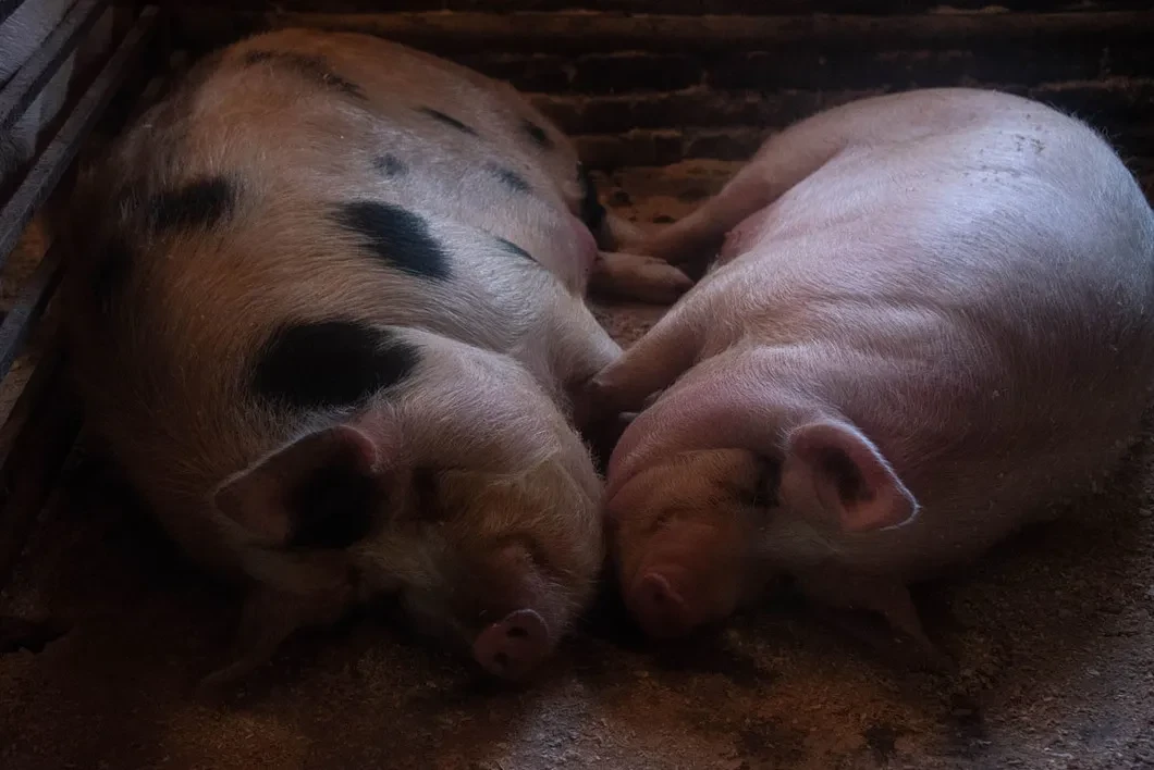 Оказывается, сейчас в вольерах живут не все звери, некоторых на время холодов переводят в хлев. Трудник ведет меня туда. В хлеву тепло. Мы бродим с Вячеславом в полумраке мимо разно-цветных коров, и я слушаю его историю под бесконечное «Му-у».