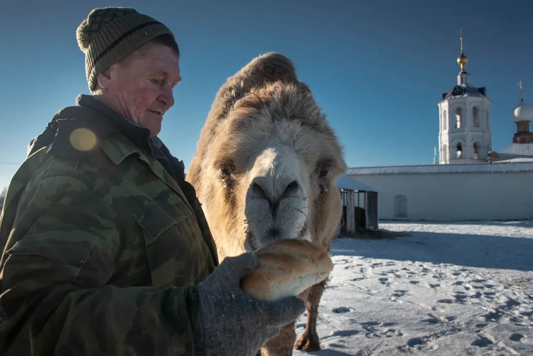 Потом один дедушка-трудник спускается из кузова машины, притопывает грязными кирзачами, закуривает. Представляется Вячеславом. Говорит, что верблюд и дикобраз — зоопарковские.