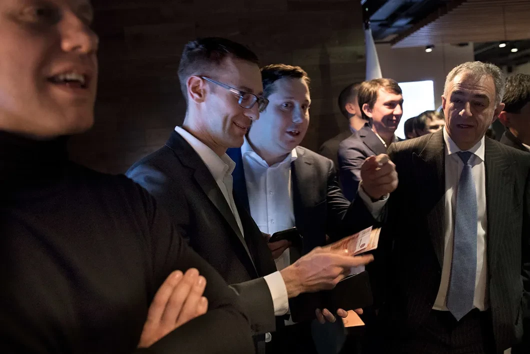 Впервые аукцион не вместил всех желающих в переговорной «Норникеля» (приходят друзья, родственники, коллеги из других компаний), и мероприятие провели в кафе на втором этаже Башни «Меркурий» в Москва-Сити.