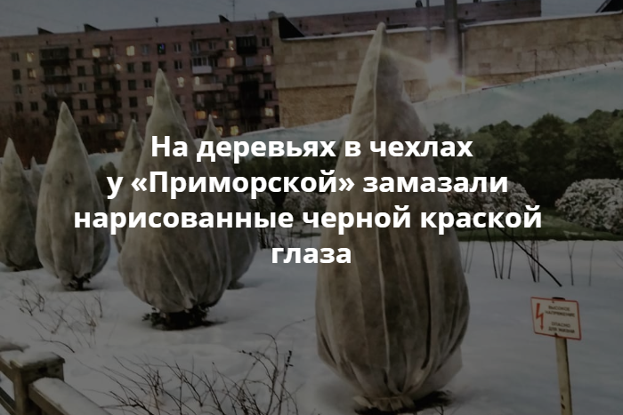 Рядом со станцией метро «Приморская» петербуржцы заметили деревья в белых чехлах с нарисованными черной краской глазами. В социальных сетях их сравнивали с привидениями.