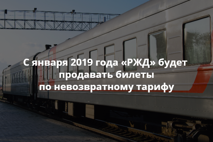 С 20 января 2019 года «РЖД» начнет продавать невозвратные билеты на поезда дальнего следования. Тариф распространяется на билеты в вагоны СВ, купе и с местами для сидения.