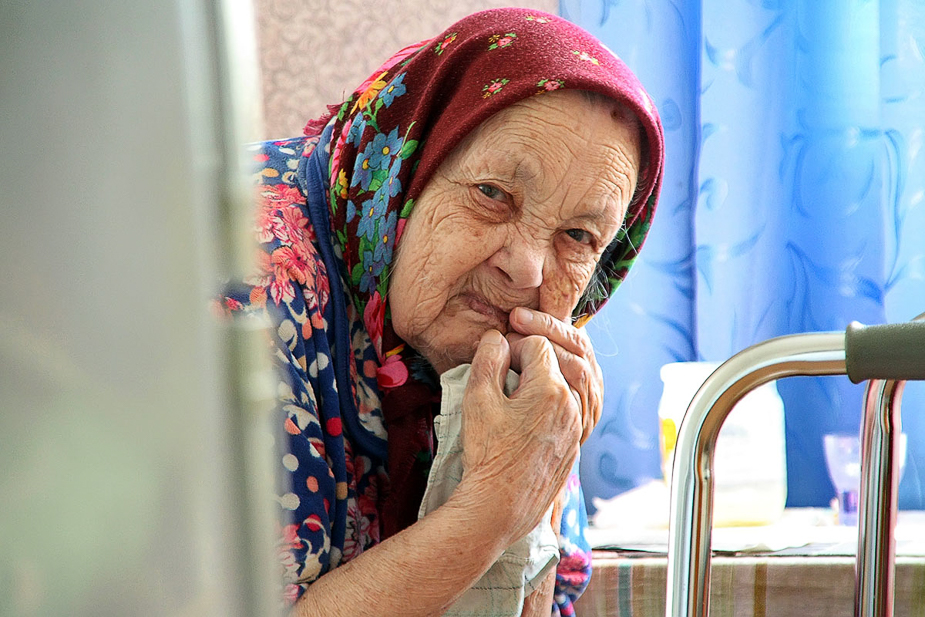 Наталия Мягкова — самый старый обитатель Сосновского отделения сестринского ухода, ей 93 года. Она не видит, но многое помнит, корреспонденту «7x7» она рассказала, как жила в деревне с родителями, но когда ей исполнилось шесть лет, мама умерла от брюшного тифа. Отец вырастил один шестерых детей. Наталия вспомнила, как крестьян раскулачивали, гнали в Сибирь, а оставшихся заставляли идти в колхоз. Закончив семь классов школы, в войну она пошла работать на Лавровский конный завод №14. Там выучилась на тракториста и работала на тракторе два года. После войны вышла замуж за Василия Мягкова. Он был шофером, когда-то работал в контрразведке «Смерш». Их сын погиб в День шофера. Муж умер. В августе 2001 года, на третий день после того, как ослепла, Наталия обратилась в сестринское отделение: