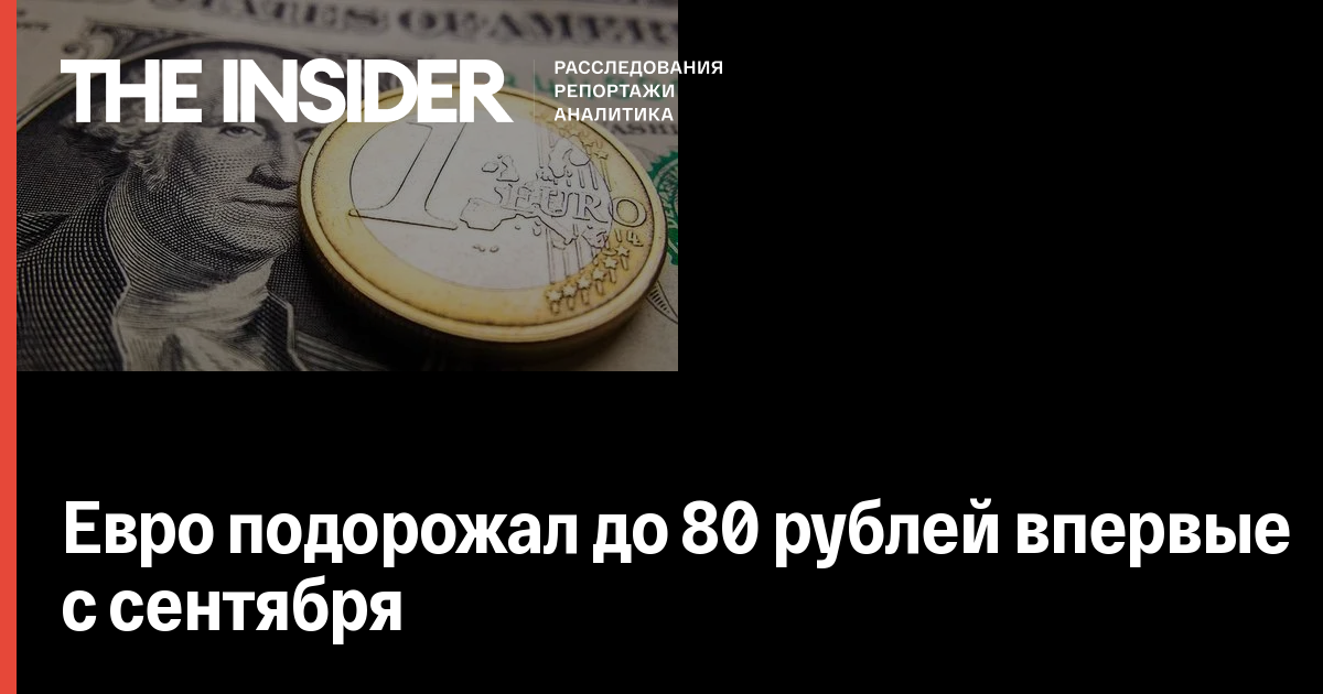 Доллар США и евро ускорили рост на Московской бирже. Курс евро достигал 80 руб./EUR1 впервые с 14 сентября.