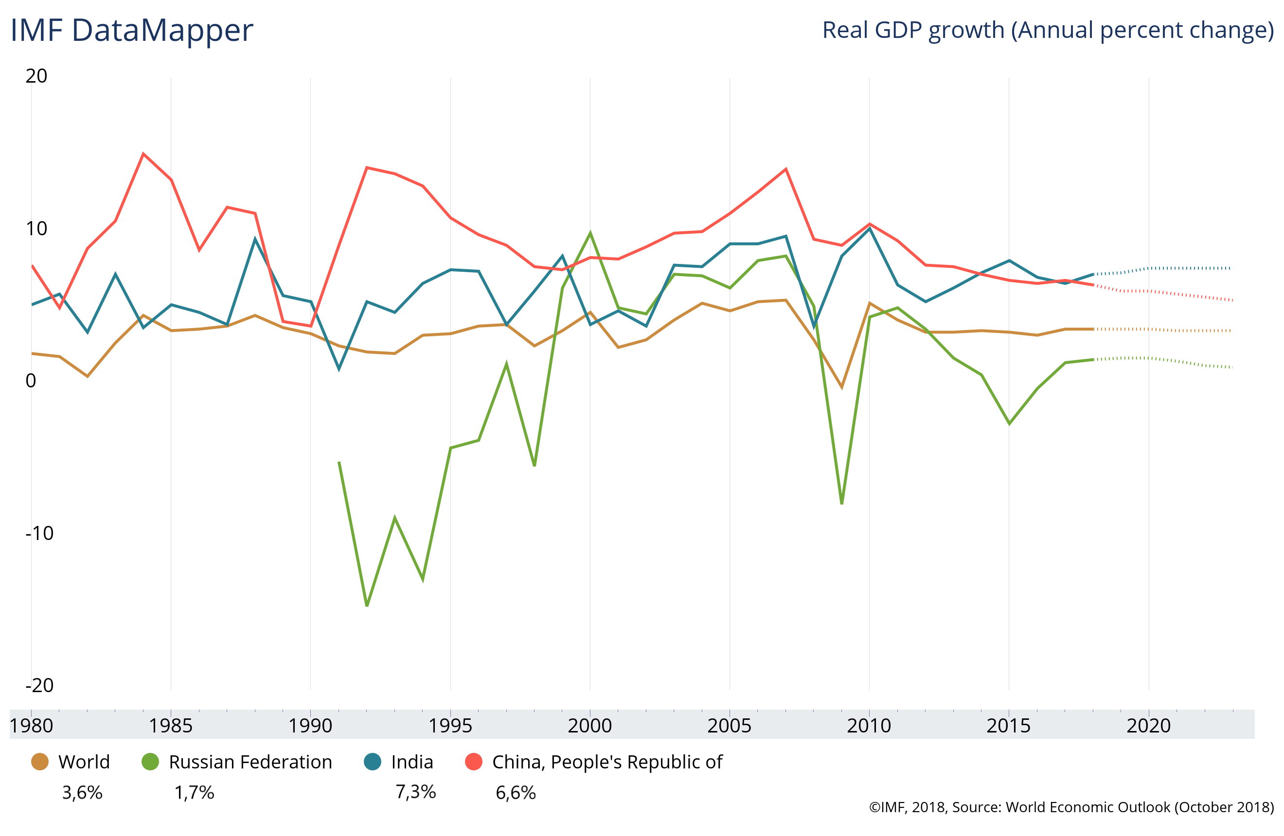 Рост ВВП: Индия в лидерах, Россия вдвое медленнее мира
