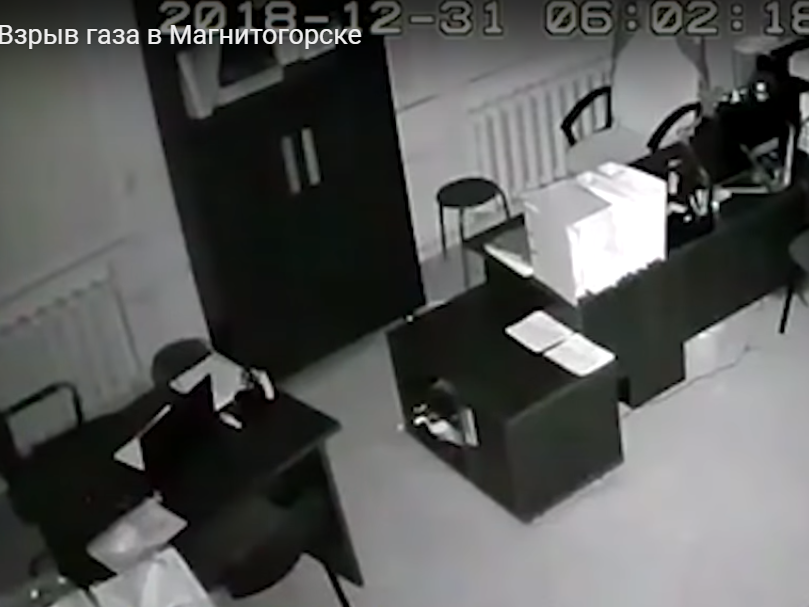 Челябинские СМИ опубликовали запись момента взрыва в десятиэтажке на проспекте Карла Маркса в Магнитогорске. Часы на видео зафиксировали точно время ЧП — 6:02. Запись сделана на складе, который расположен на первом этаже дома, это правее рухнувшей секции.