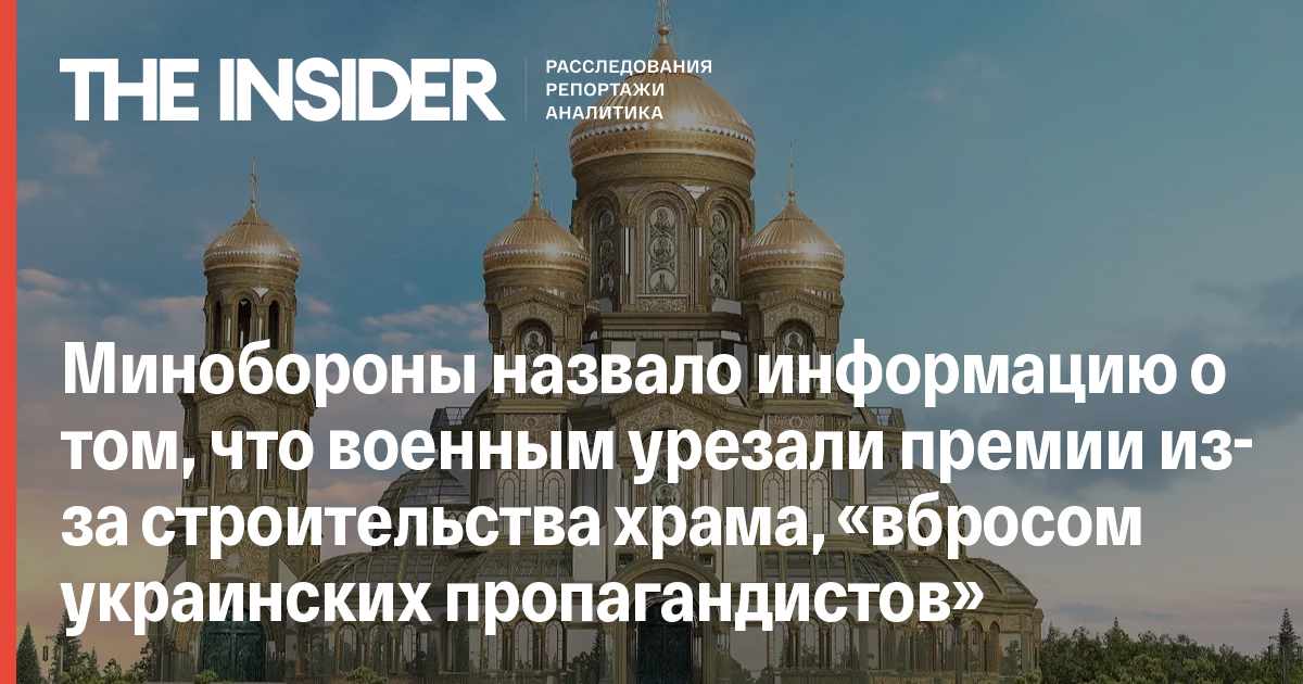 Минобороны назвало информацию о том, что военным урезали премии из-за строительства храма, «вбросом украинских пропагандистов»